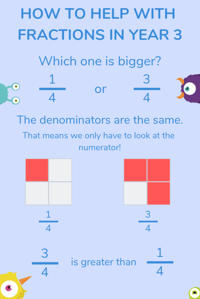 Fortunately, in Year 3, you only need to compare fractions with the same denominator, which makes things easier.