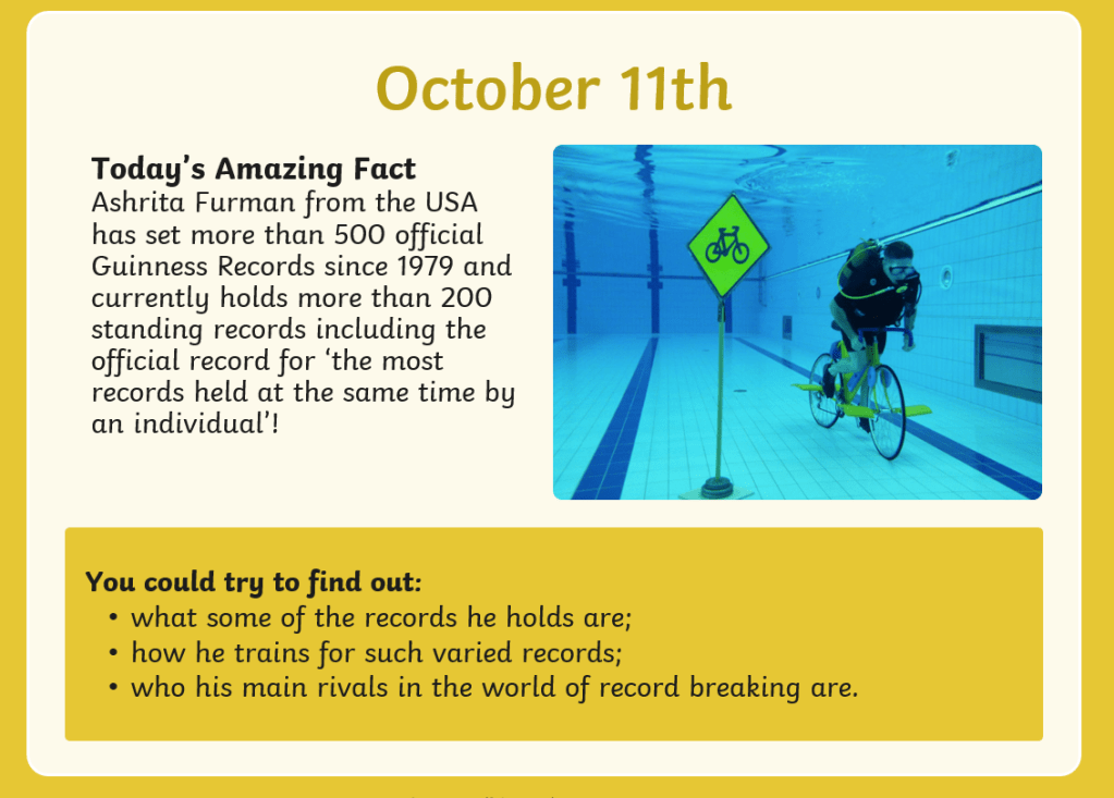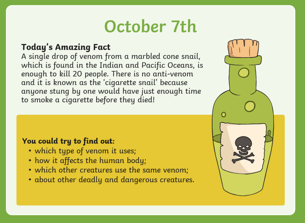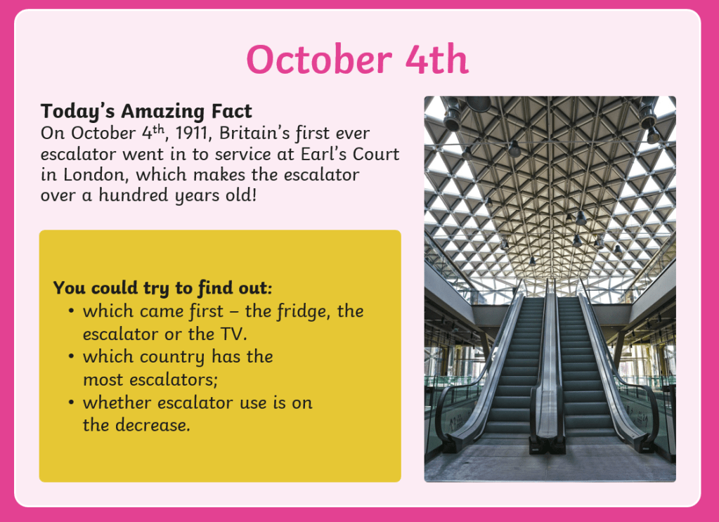 amazing October facts 0 October 11, 2021 Written by uk homeschool 3-a-new-loaf-activity-sheetDownload 4-the-magic-escalator-activity-sheetDownload 5-an-a-z-of-books-activity-sheetDownload 6-should-primary-schools-have-vending-machines-activity-sheetDownload 7-the-worlds-most-poisonous-animals-activity-sheetDownload 8-staying-safe-in-the-open-water-activity-sheetDownload 9-shark-infested-co-ordinates-activity-sheetDownload 10-design-a-food-diary-activity-sheetDownload 11-scuba-search-activity-sheetDownload 12-its-in-our-dna-activity-sheetDownload Share this: Click to share on X (Opens in new window) X Click to share on Facebook (Opens in new window) Facebook Like Loading... Related