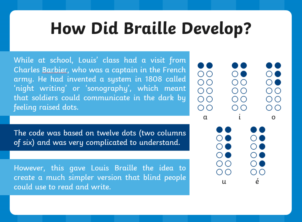 World Braille Day is celebrated on the 4th of January because it’s the birthday of Louis Braille. Louis was born in France in 1809, and he was blinded in a childhood accident. However, he was determined to overcome this setback, and, inspired by Charles Barbier’s night reading system, he invented what we now know as braille. What’s more, he did all of this at the age of 15!