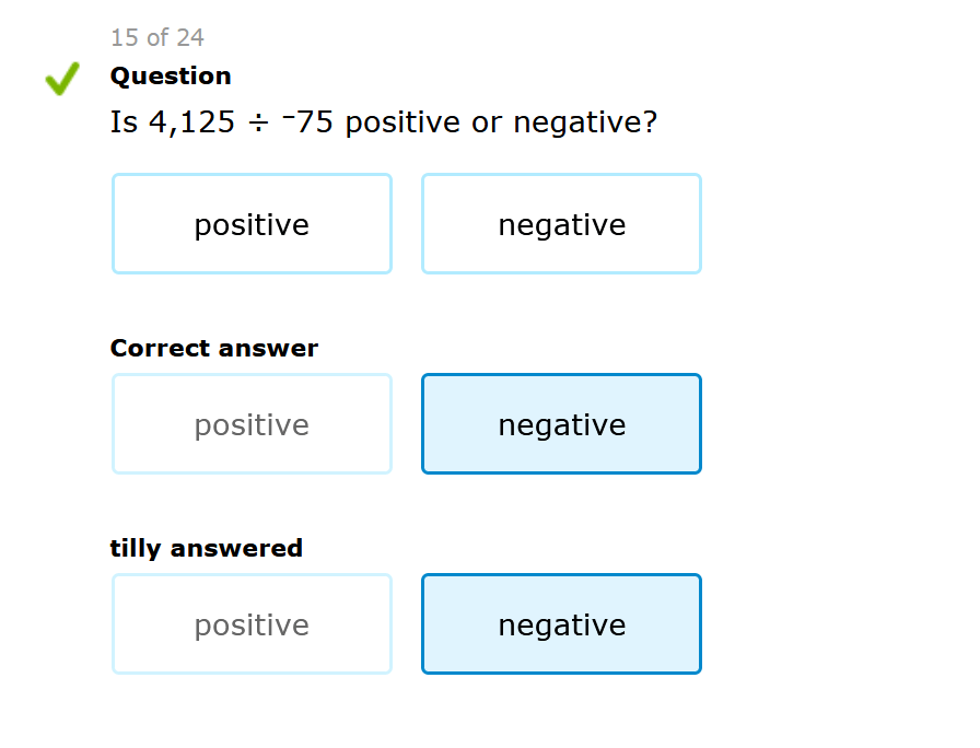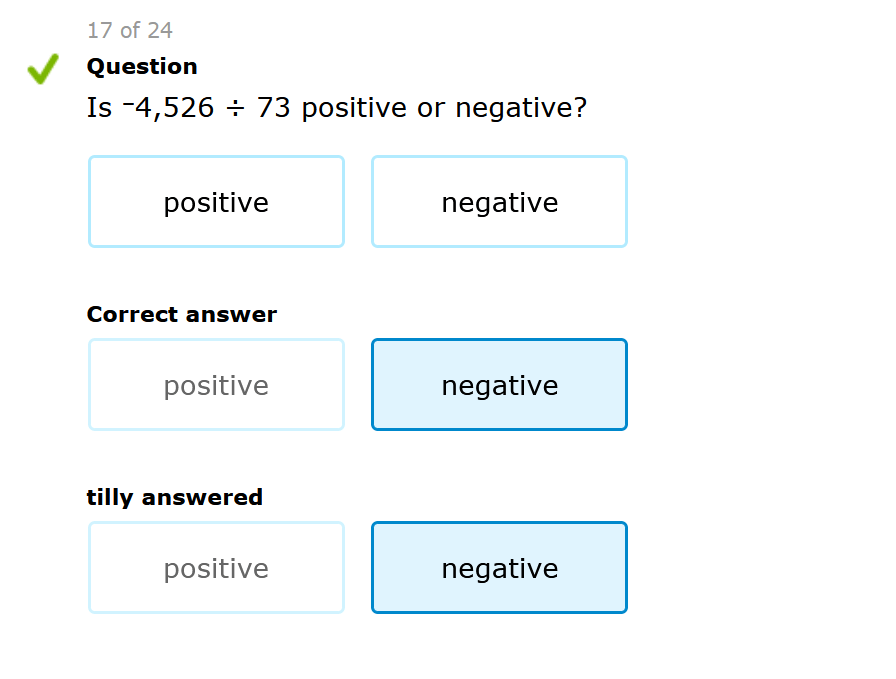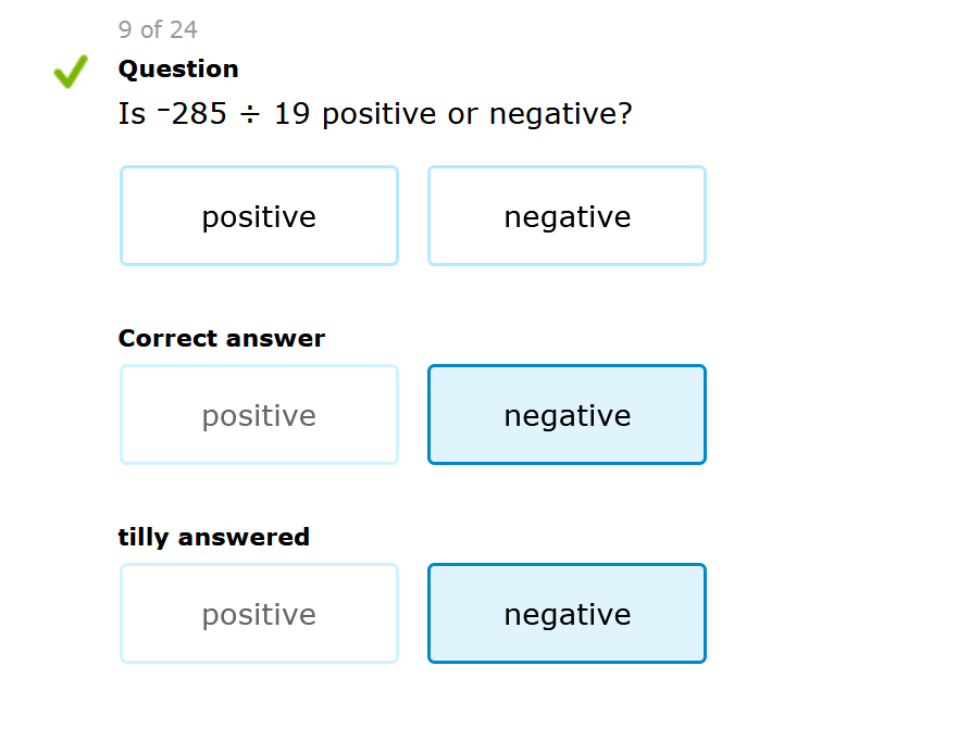 When you divide two integers with different signs, the result is always negative. Just divide the absolute values and make the answer negative.