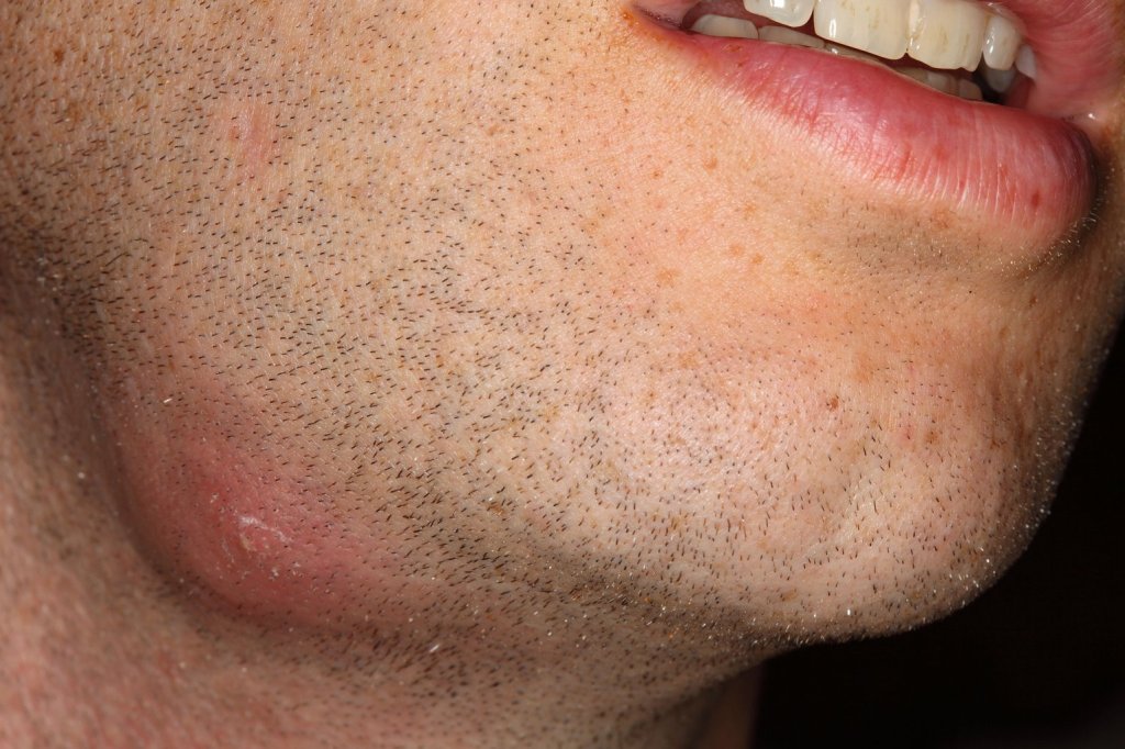 A skin abscess often appears as a swollen, pus-filled lump under the surface of the skin. You may also have other symptoms of an infection, such as a high temperature and chills.
