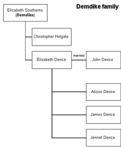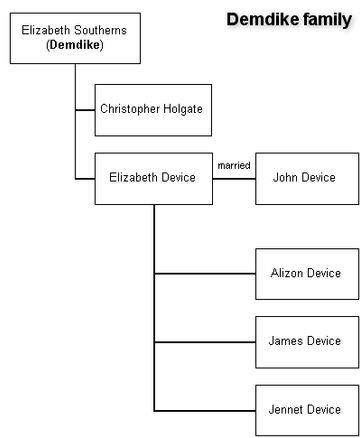 - Elizabeth Device – Demdike’s daughter. Accused of witchcraft.