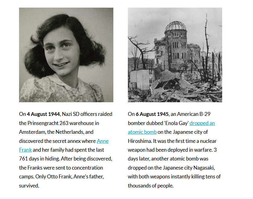 This week in modern history 0 August 4, 2022 Written by uk homeschool The Olympics: 9 of the Most Controversial Moments in its Modern History Why Did Britain Enter World War One? Anne Frank’s Legacy: How Her Story Changed the World 10 Facts About the Atomic Bombing of Hiroshima and Nagasaki Share this: Click to share on X (Opens in new window) X Click to share on Facebook (Opens in new window) Facebook Like Loading... Related