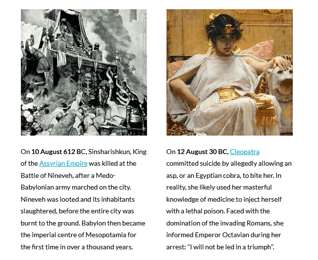 Anniversaries this week in ancient history 0 August 24, 2022 Written by uk homeschool ‘Painted People’: Who Were the Picts? The Olmec Colossal Heads Share this: Click to share on X (Opens in new window) X Click to share on Facebook (Opens in new window) Facebook Like Loading... Related