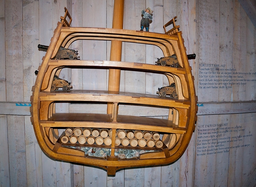 The Swedish warship Vasa. It sank in 1628 less than a mile into its maiden voyage and was recovered from the sea floor after 333 years almost completely intact.