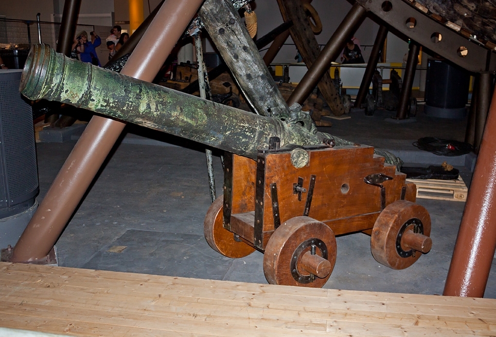 One of the Vasa’s original cannons, fitted to a replica stand.